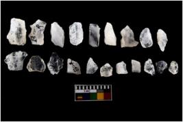| Description / विवरण | There are n-20 of intact flake cores made up of Quartz. Some of them have bulge of percussion and some are flat flakes. |