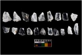 | Description / विवरण | There are n-20 of intact flake cores made up of Quartz. Some of them have bulge of percussion and some are flat flakes. |