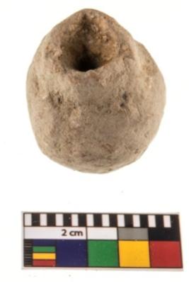 | Description / विवरण | A complete specimen of a terracotta miniature pot it is with convex sides flat bottom in-turned rim. It is made of clay medium fabric and ill fired |
