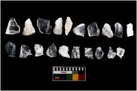 | Description / विवरण | There are n-20 of intact flake cores made up of Quartz. Some of them have bulge of percussion and some are flat flakes. |