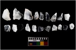 | Description / विवरण | There are n-20 of intact flake cores made up of Quartz. Some of them have bulge of percussion and some are flat flakes. |