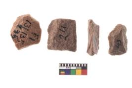 | Description / विवरण | A specimen of flake tool with prominent flaking marks. It made up of a short flakes with sides trimmed. It is rectangular in shaped. |