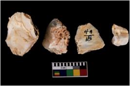 | Description / विवरण | Specimen of a cores with several broad fluted marks. Some of them are tapering at one end. |