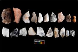 | Description / विवरण | There are n-20 of intact flake cores. Out of them 5 are made up of Chert 2 are made up of Chalcedony and 13 are made up of Quartz. Some of them have bulge of percussion and some are flat flakes. |