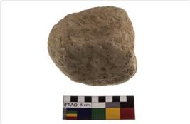 | Description / विवरण | A partially broken specimen of a quartz hammer stone . It is roughly cirular in shape base is almost flat. |