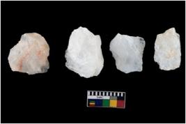 | Description / विवरण | Specimen of a fluted cores having several broad fluted marks indicating the detached blades from it. |