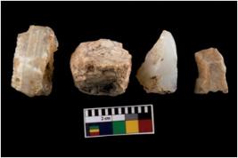 | Description / विवरण | Specimen of a cores with several broad fluted marks. Some of them are tapering at one end. |
