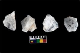| Description / विवरण | Four utilised worked flakes with sharp edges. Some of them are tapering at one end. |