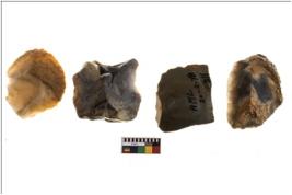 | Description / विवरण | Four worked utilised flakes with sharp edges. |