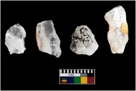| Description / विवरण | Four utilised worked flakes with sharp edges. Some of them are tapering at one end. |