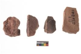 | Description / विवरण | A specimen of flake tool with prominent flaking marks. It made up of a short flakes with sides trimmed. It is rectangular in shaped. |