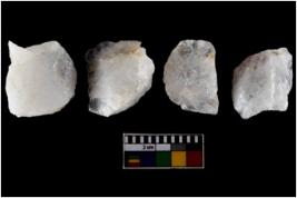 | Description / विवरण | There are n-4 of intact flake cores made up of Quartz. Some of them have bulge of percussion and some are flat flakes. |