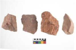 | Description / विवरण | A specimen of flake tool with prominent flaking marks. It made up of a short flakes with sides trimmed. It is rectangular in shaped |