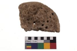 | Description / विवरण | A cuboid shaped specimen of a skin rubber with chevron design and many perforations over its surface. |