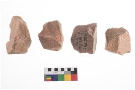 | Description / विवरण | A specimen of flake tool with prominent flaking marks. It made up of a short flakes with sides trimmed. It is rectangular in shaped |