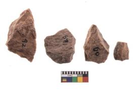 | Description / विवरण | A specimen of flake tool with prominent flaking marks. It made up of a short flakes with sides trimmed. It is rectangular in shaped. |