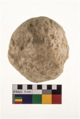 | Description / विवरण | A partially broken specimen of a hammer stone with rough surface, it is made of quartz , it is circular in shape. |