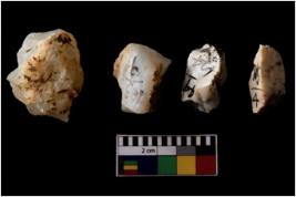 | Description / विवरण | Specimen of a cores with few broad fluted marks. Some are pointed at one end. |