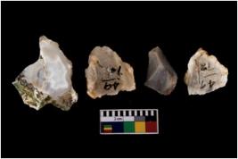 | Description / विवरण | Specimen of a cores with few broad fluted marks. Some are pointed at one end. |