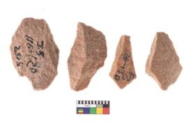 | Description / विवरण | A specimen of flake tool with prominent flaking marks. It made up of a short flakes with sides trimmed. It is rectangular in shaped. |