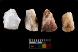 | Description / विवरण | There are n-4 of intact flake cores made up of Quartz. Some of them have bulge of percussion and some are flat flakes. |