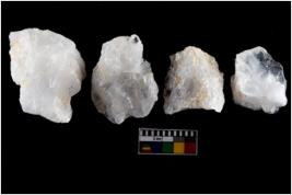 | Description / विवरण | There are n-4 of intact flake cores made up of Quartz. Some of them have bulge of percussion and some are flat flakes. |