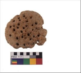 | Description / विवरण | A specimen of a cake with many perforations all over the surface. It is greyish in colour. |