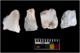 | Description / विवरण | There are n-4 of intact flake cores made up of Quartz. Some of them have bulge of percussion and some are flat flakes. |
