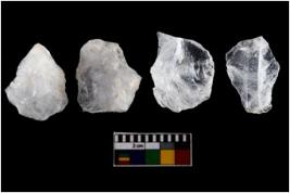 | Description / विवरण | There are n-4 of intact flake cores made up of Quartz. Some of them have bulge of percussion and some are flat flakes. |