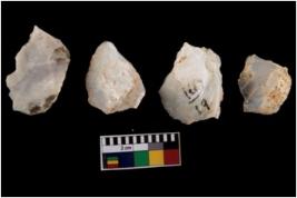 | Description / विवरण | Specimen of a cores with few broad fluted marks. Some are pointed at one end. |