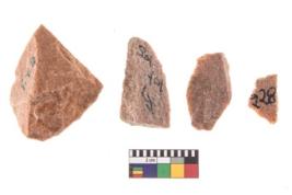 | Description / विवरण | A specimen of flake tool with prominent flaking marks. It made up of a short flakes with sides trimmed. It is rectangular in shaped. |