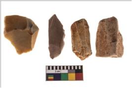 | Description / विवरण | Specimen of four worked utilised flakes with sharp edges. |