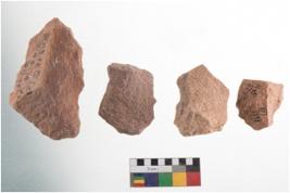 | Description / विवरण | A specimen of flake tool with prominent flaking marks. It made up of a short flakes with sides trimmed. It is rectangular in shaped |