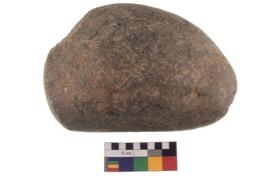 | Description / विवरण | A complete specimen of an oval shaped muller. It has battered surface along with curved ridges and oval section. |