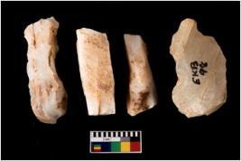 | Description / विवरण | Four flakes; most of them are tapering at one end with few having sharp edges. |