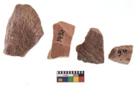 | Description / विवरण | A specimen of flake tool with prominent flaking marks. It made up of a short flakes with sides trimmed. It is rectangular in shaped. |