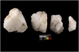 | Description / विवरण | Specimen of a cores with few broad fluted marks. Some are pointed at one end. |