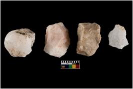 | Description / विवरण | Specimen of a cores with few broad fluted marks. Some are pointed at one end. |