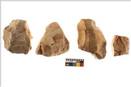 | Description / विवरण | Specimen of fluted cores showing impressions of blades removed from almost all the sides. |