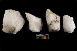 | Description / विवरण | Specimen of a cores with few broad fluted marks. Some are pointed at one end. |