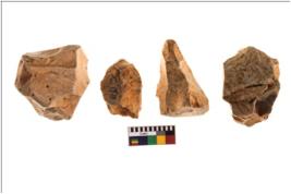 | Description / विवरण | Specimen of fluted cores showing impressions of blades removed from almost all the sides. |