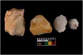 | Description / विवरण | Specimen of fluted cores showing impressions of blades removed from almost all the sides. |
