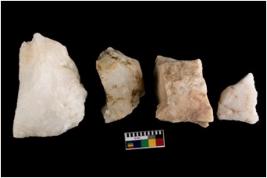 | Description / विवरण | Specimen of a cores with several broad fluted marks. The reverse bulb and platform can be seen. The flake scars are seen on all sides. |