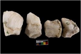 | Description / विवरण | Specimen of a cores with several broad fluted marks. The reverse bulb and platform can be seen. The flake scars are seen on all sides. |