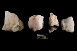 | Description / विवरण | Specimen of a cores with several broad fluted marks. The reverse bulb and platform can be seen. The flake scars are seen on all sides. |