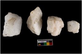 | Description / विवरण | Specimen of a cores with several broad fluted marks. The reverse bulb and platform can be seen. The flake scars are seen on all sides. |