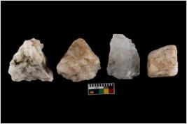 | Description / विवरण | Specimen of a cores with several broad fluted marks. The reverse bulb and platform can be seen. The flake scars are seen on all sides. |