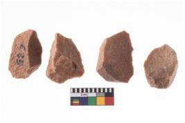 | Description / विवरण | A rectangular flake with wavy thick distal end and broken functional top. It reined pebbly cortex on one side and irregular thin edge on the other. |