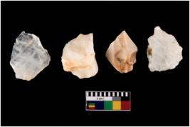 | Description / विवरण | Four flakes; most of them are tapering at one end with few having sharp edges. |