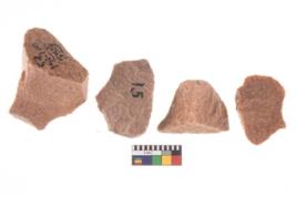 | Description / विवरण | A rectangular flake with wavy thick distal end and broken functional top. It reined pebbly cortex on one side and irregular thin edge on the other. |